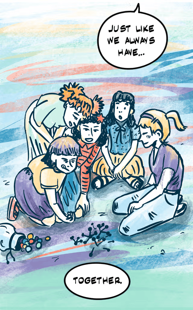 Gao’s art is expressive, breaking the rules of conventional sequential art to give readers an experience through the artist’s soul. The variety in line thickness already gives the story visual depth, but the limited color scheme pushes readers to focus on the mood and atmosphere rather than specific characters or even setting. It helps that, as a nonfiction work, the settings and characters of these stories are limited; this is about Houston’s Gee family after all. Readers get to see the good moments that add color to people’s lives in a literal sense. This lets readers feel the impact of these moment, empathizing with the joy felt by the people in the stories. The texture in the background is reminiscent of traditional artistic media, fitting to show history in web-comic form.